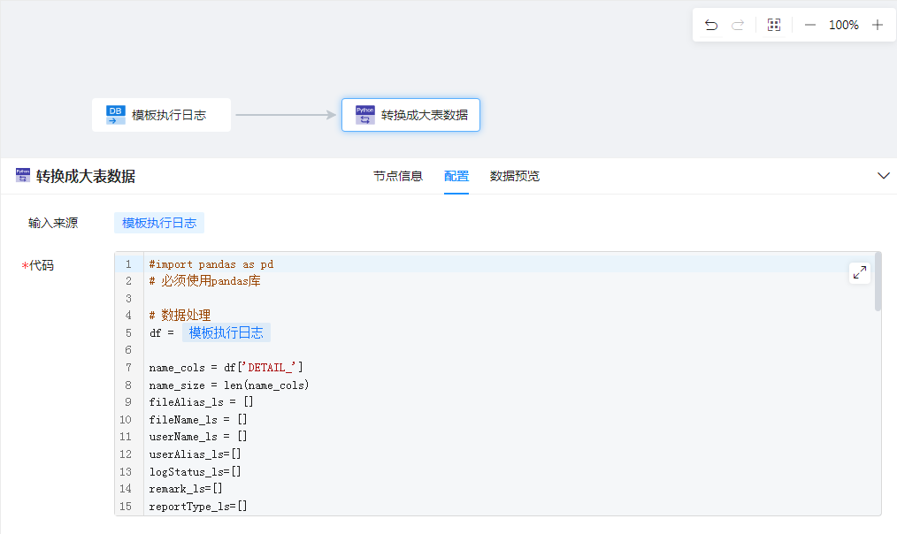 【Python】节点主要使用Python脚本对于一些复杂的数据进行处理,与 SparkSQL 的区别,就类似数据库中 SQL 和存储过程的关系,【Python】节点主要处理比如面向过程和逻辑性的业务。