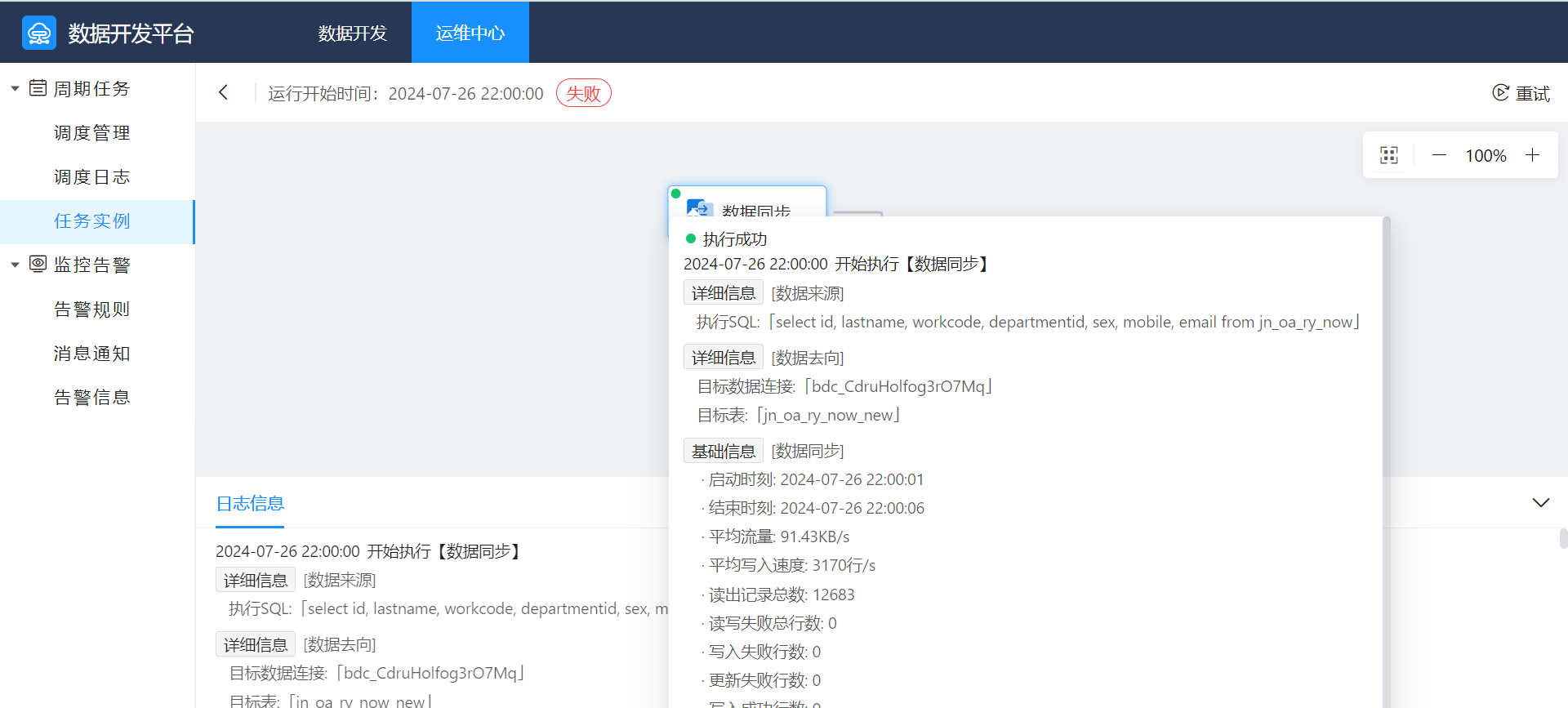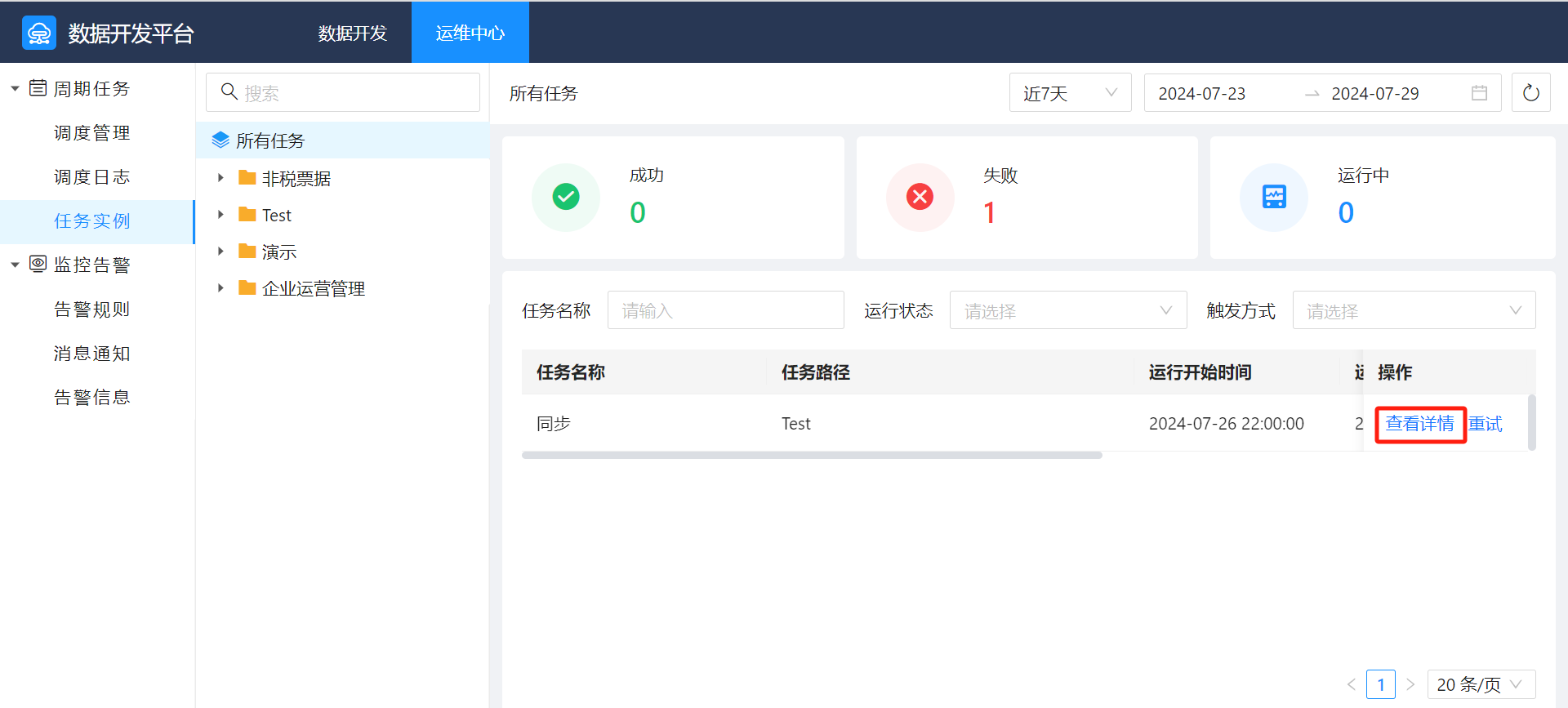 1)在任务实例界面点击「查看详情」,即可看到当次任务运行的日志记录,如下图所示: