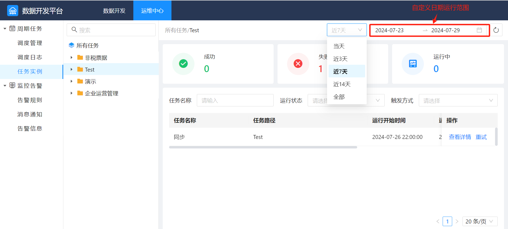 2)可筛选全部记录、自定义周期内的运行记录。如下图所示: