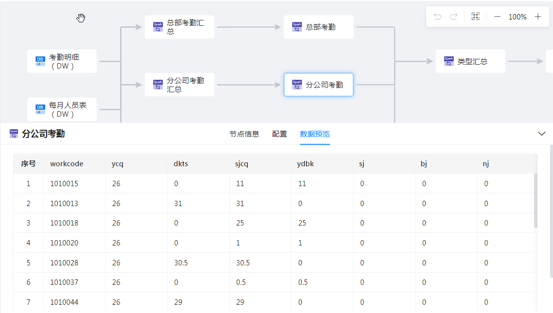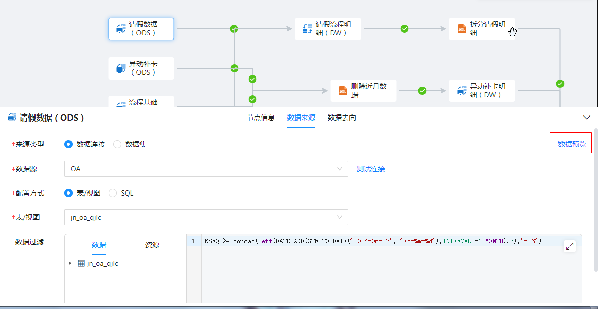 部分节点可以在节点配置时通过“数据预览”查看获取的数据或处理后的数据。比如: