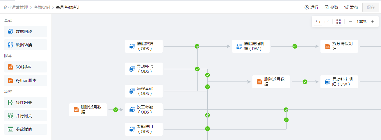 任务调试好之后,可点击工具栏上的“发布”按钮将该任务由设计文件发布为正式文件。