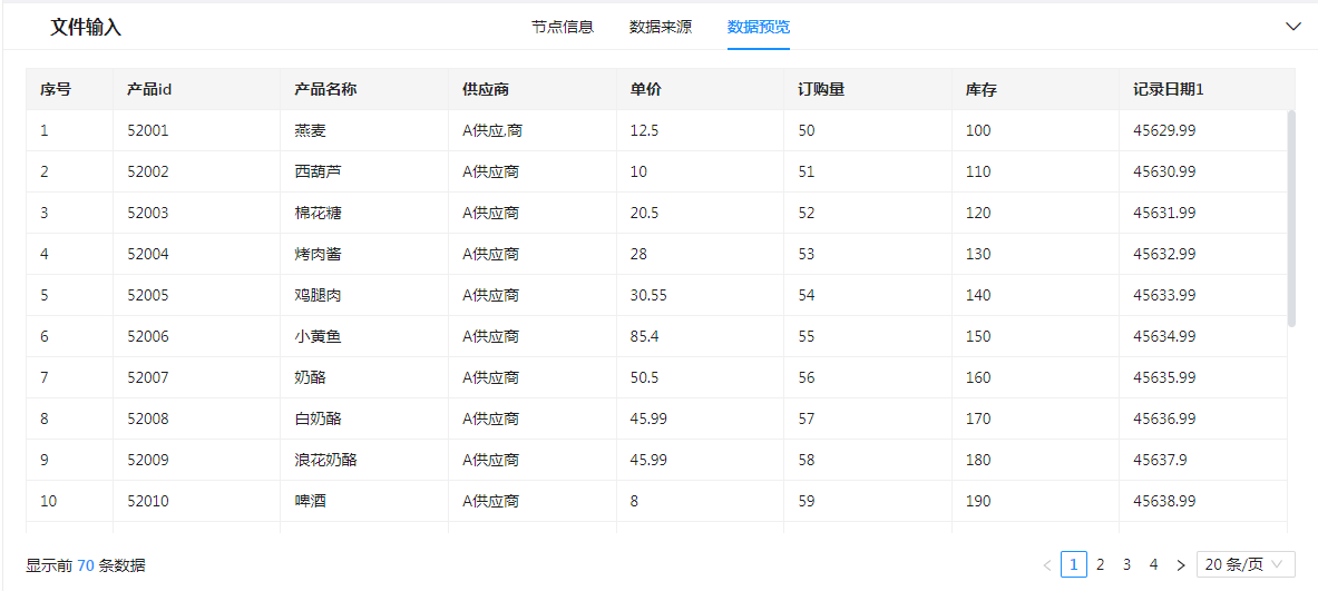 数据来源配置完成后,切换到“数据预览”tab,可查看所有输出字段对应的数据,如下图: