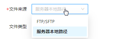 指的是从远程FTP/FTPS服务器中读取文件,选择该类型时,需要指定对应文件存放的服务地址,下拉可选的服务地址为FTP站点中配置的所有站点对应服务地址,其中,FTP站点参考文档:FTP站点配置。