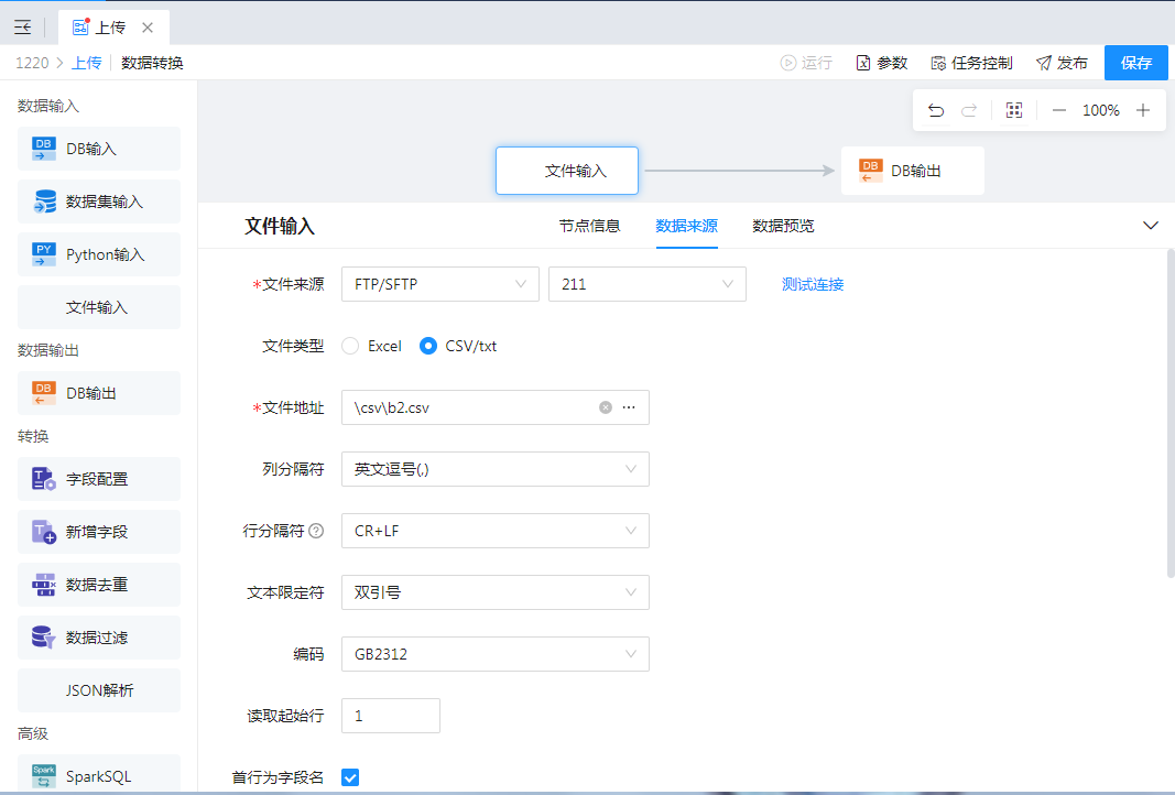 企业常需将分散在不同系统的静态数据(如销售记录Excel文件、物流日志CSV文件)整合到数据中台。例如零售企业每日从门店POS系统导出CSV格式的销售数据,通过文件输入功能自动解析转换为标准表结构并存储到数据湖中。