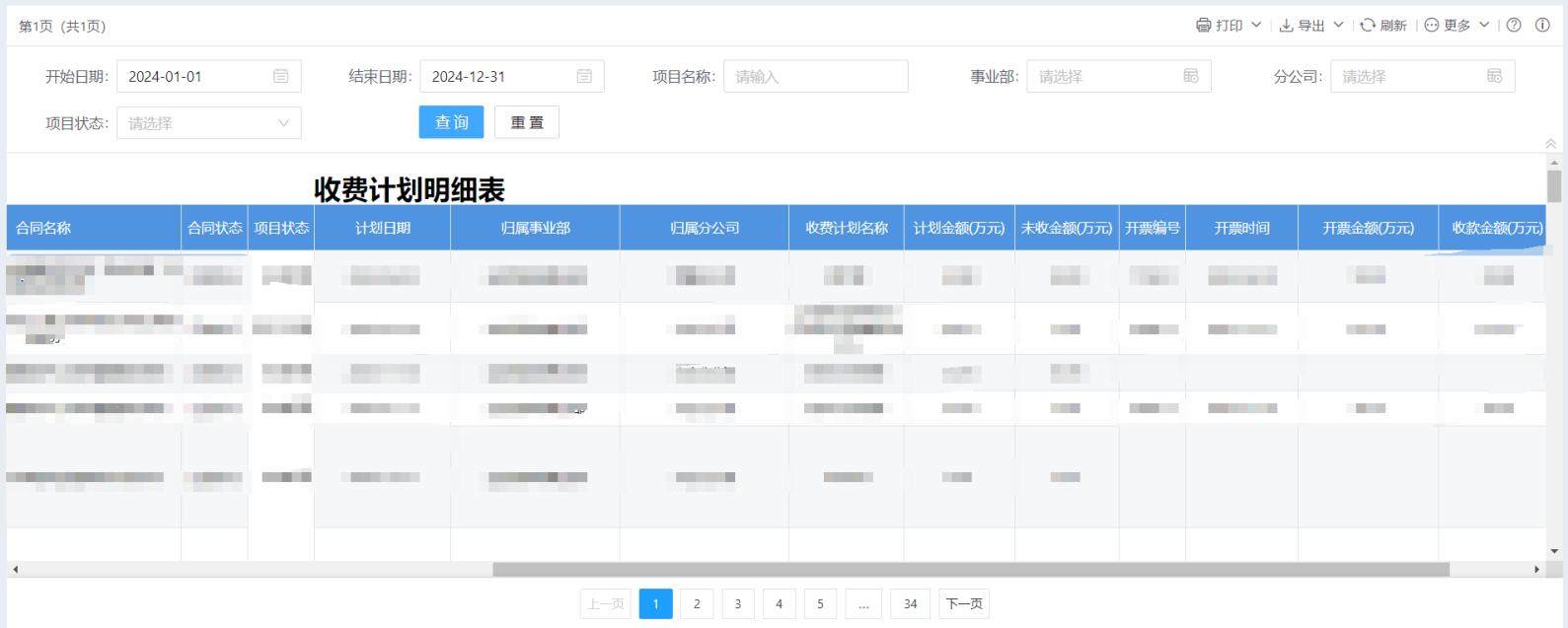 以同样的方式,分别获取到项目对应的收费计划、开票和收款金额汇总数据。