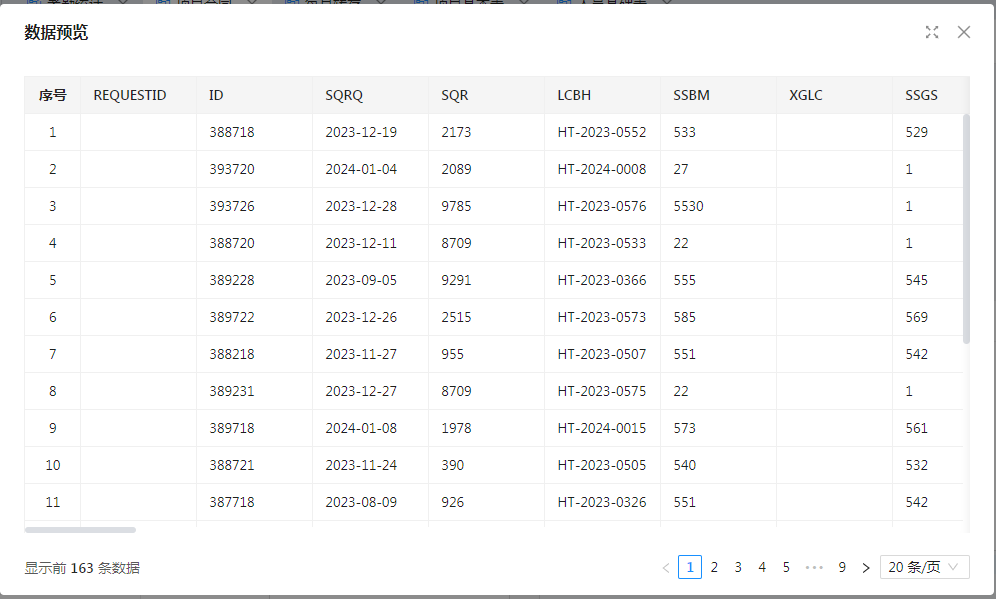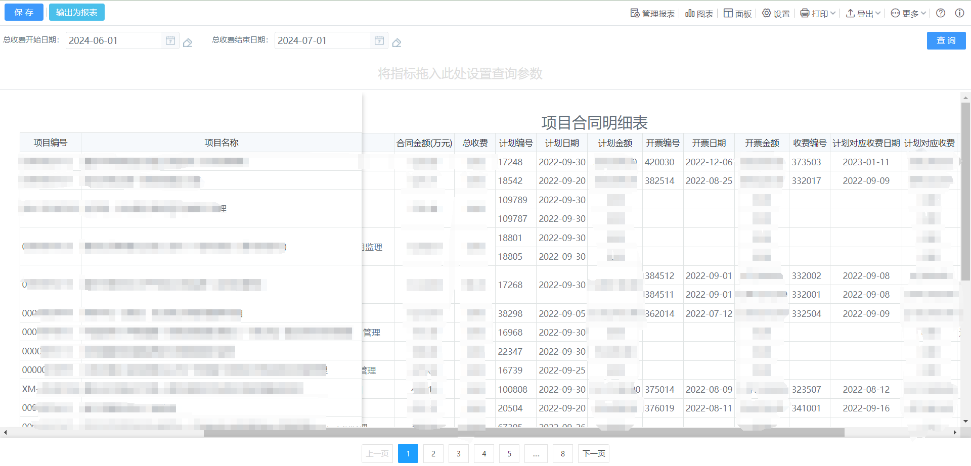 以此类推,将两个表关联查询的结果再与另一张表进行关联,最终产生“项目合同明细”数据,预览数据如下图: