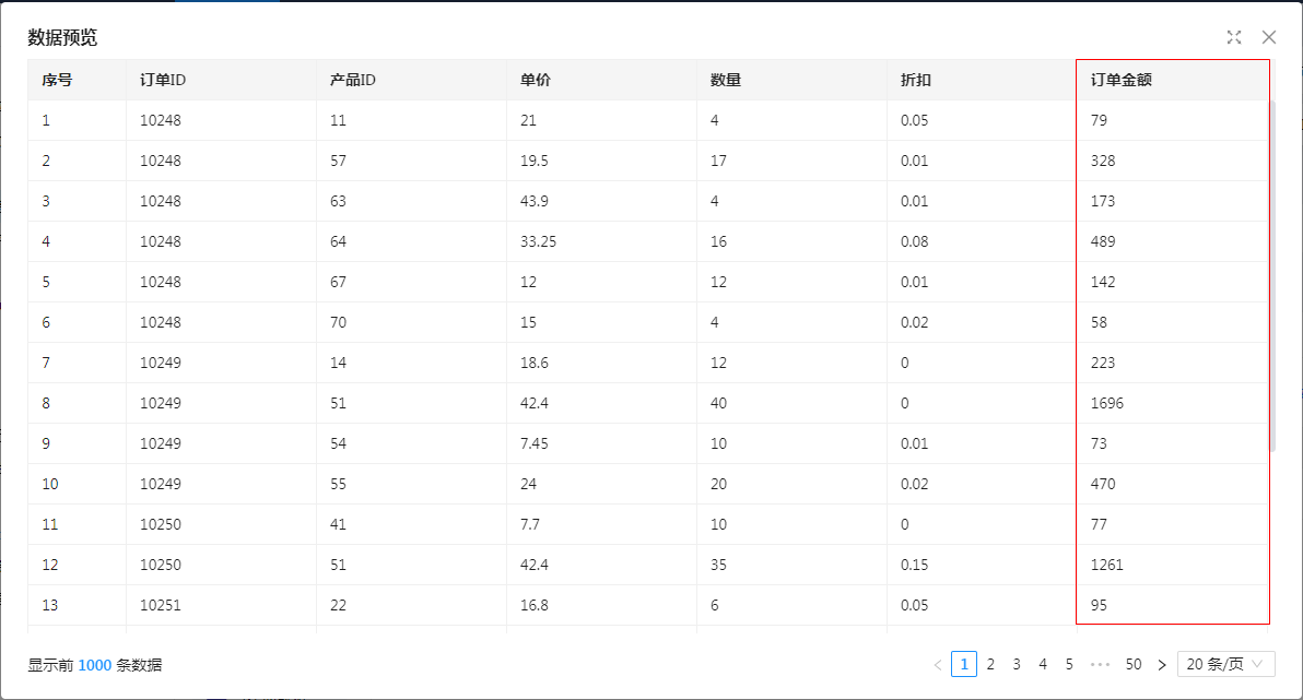 2、新增“订单金额”字段