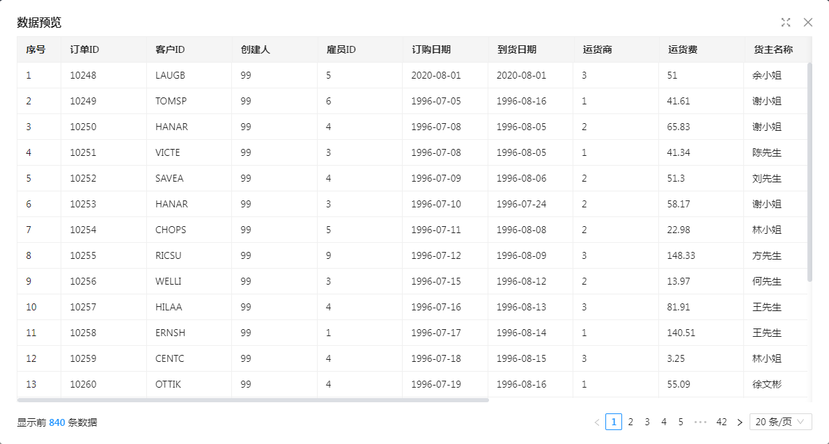字段配置好后,点击“数据预览”,将根据设置对原数据进行对应的处理显示最终的处理结果,如下图: