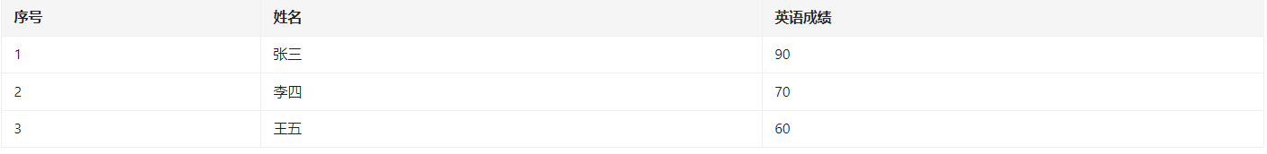 1)英语成绩表数据如下图所示: