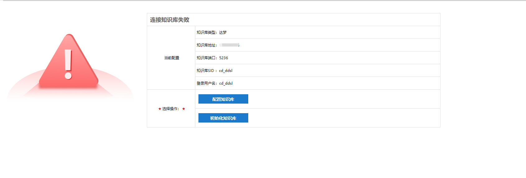 如果配置的知识库是新建的数据库(没有进行过知识库初始化的),则需要对配置的知识库进行初始化。
