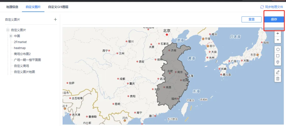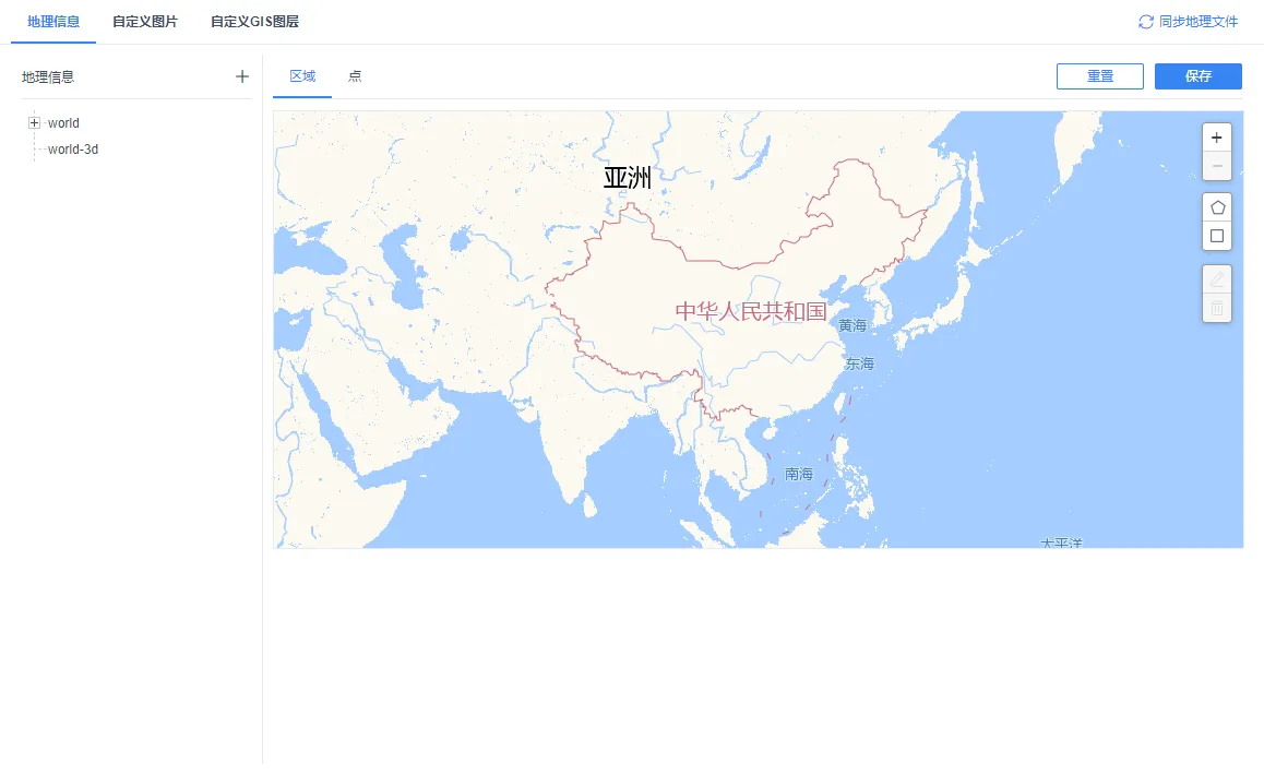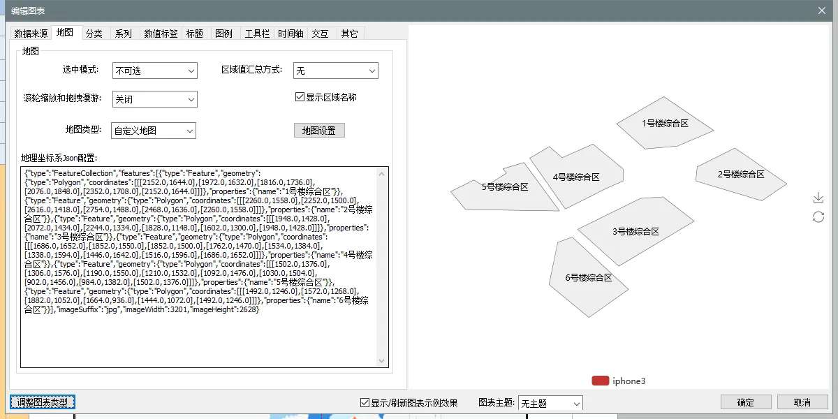 区域地图自定义geojson,选择地图类型为自定义,将geojson文件内容放入下方内容中