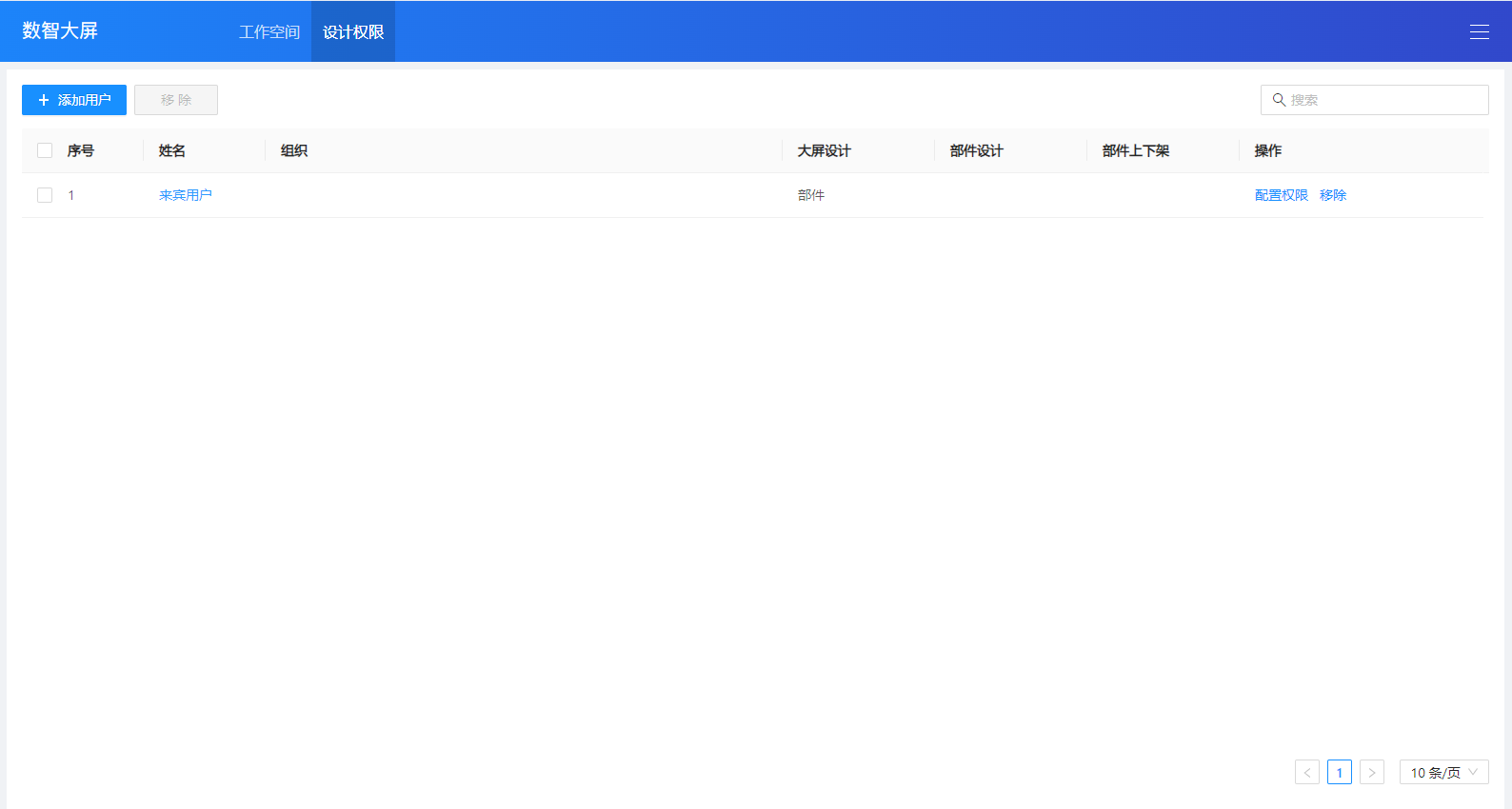 如果想进一步的设置用户设计权限,可以由系统或应用管理员进入数智大屏管理中心在“设计权限”下进行配置。
