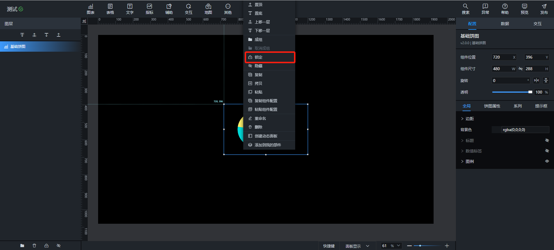 在画布中选中某一组件,右键弹出工具栏,点击“锁定”,即可锁定该组件。