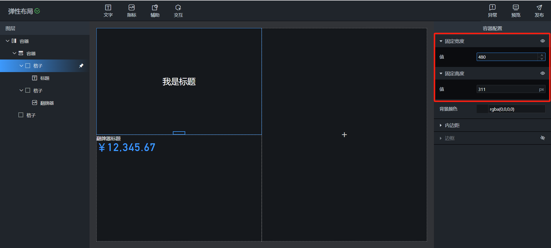 若选中的容器/格子其样式配置为固定宽高,则也可在其配置面板中对数值进行调整。