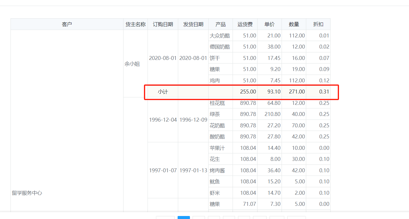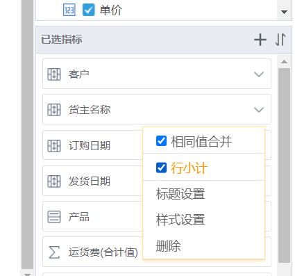 当有统计当前客户所有货主的数据时,可以通过设置货主所在的行小计。