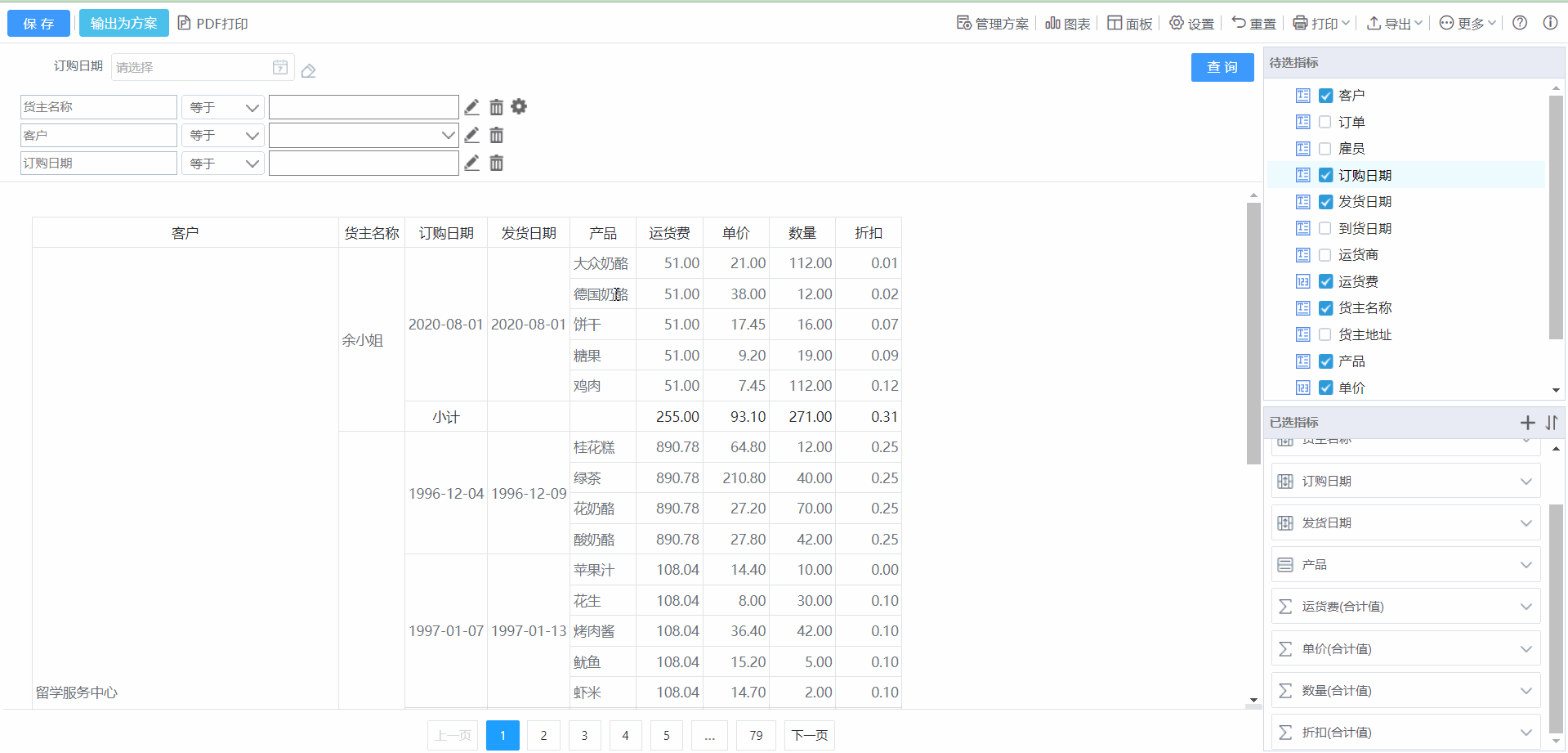 此功能由业务人员进行操作,系统还提供了条件过滤的功能,进一步缩小数据范围,提高报表的执行效率和数据的精确定位。