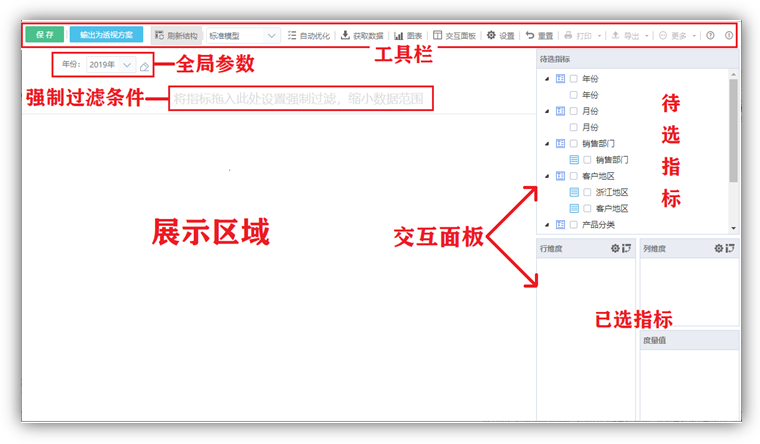 目录 搜索 展开 产品简介产品概述产品优势产品亮点多维透视分析概述设计流程准备工作使用前提系统表集合分类表:dn_jhfl集合属性表:dn_jhsx集合表:dn_jh快速入门业务表准备创建数据视图创建透视模型定义集合定义透视模型生成透视方案生成透视报表透视模型简介模板数据和参数属性设置关联字典关联集合集合管理集合集合属性集合定义集合成员初始化成员自定义成员预览预览透视模型设置过滤条件透视方案界面介绍维度设置度量值设置设置过滤条件工具栏刷新结构查询自动优化设置其他透视报表界面介绍专题介绍同比和环比图表设计即席查询概述快速入门准备工作第一个即席查询创建数据视图生成即席查询模型生成方案生成报表即席查询模型全局参数属性设置表达式配置显示值关联字典关联集合设置超链接设置过滤条件即席查询方案页面介绍报表设计全局配置页头设计表头设计表尾设计表格设计指标选择表格设置指标配置图表设计输出为方案即席查询报表专题介绍集合管理计算列智能分析报告概述设计流程准备工作lczWord原理前提准备指标库设置系统表和存储过程dn_dy_qjcsdn_dy_jsxdn_dy_jsx_csdn_dy_jsx_zddn_cc_jsx_cs_zhdn_cc_jsx_zd_jgdn_cc_jsx_yjg_jgp_dn_cip_dn_ci_compute全局参数全局参数企业年月计算项计算项预加工计算项实时计算项存储过程示例p_dn_ci_system_sampleget_orderMx指标文本指标图表指标报告模型原理和过程创建入口工具箱报告编辑保存与预览输出报告方案报告方案报告方案编辑保存和输出报告结果报告结果查看报告结果展示小乐AI会话数据分析分类及主题配置向量数据查询方法 暂无相关搜索结果! 界面介绍 作者:fancy 创建时间:2023-06-09 14:48最后编辑:fancy 更新时间:2025-03-11 16:12 扫码关注网盛数新公众号,获取更多帮助资料 上一篇:无 下一篇:无 提交评论
