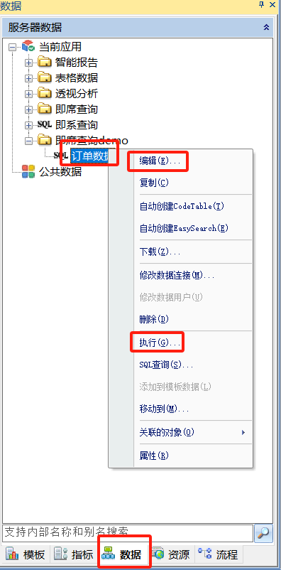 数据视图创建完毕后会形成一个目录文件,可对其进行编辑、执行(查看)、复制等等操作