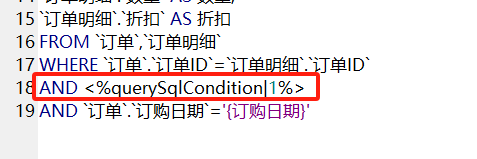 即席查询编写sql语句必须在where条件中加入标识符:<%querySqlCondition|1%>