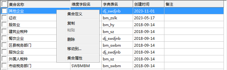- 维度字段名:维度字段名主要是用于集合查询和透视模型中自动匹配集合。一般情况下集合的维度字段和业务数据表中的字段名称对应,当透视模型的维度字段右键“自动匹配”时,根据透视模型中当前字段“内部名称”查询集合属性表中“维度字段”对应的集合。