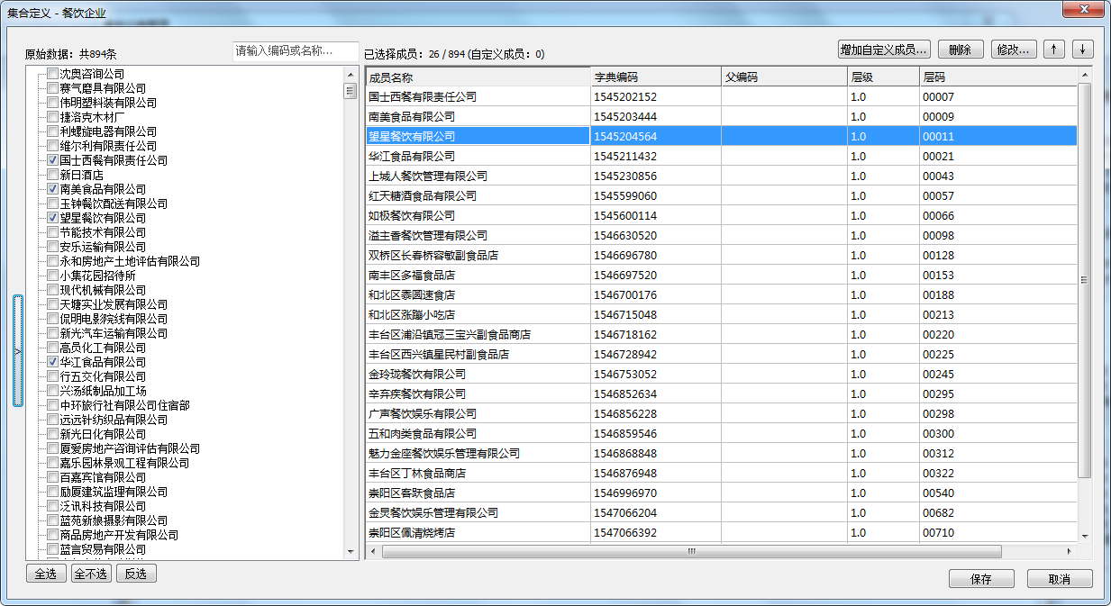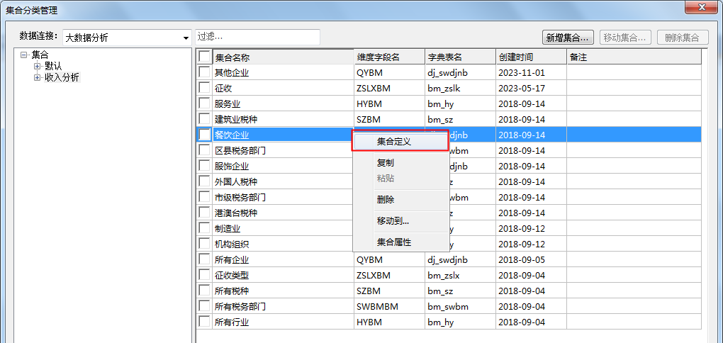 比如进入集合”餐饮企业”的集合定义界面,如下图: