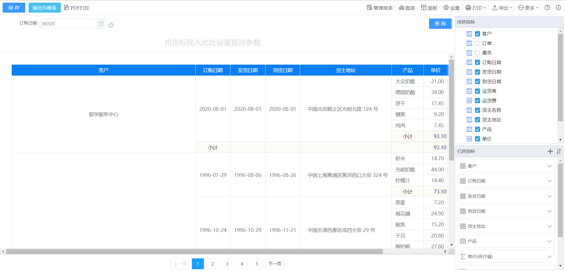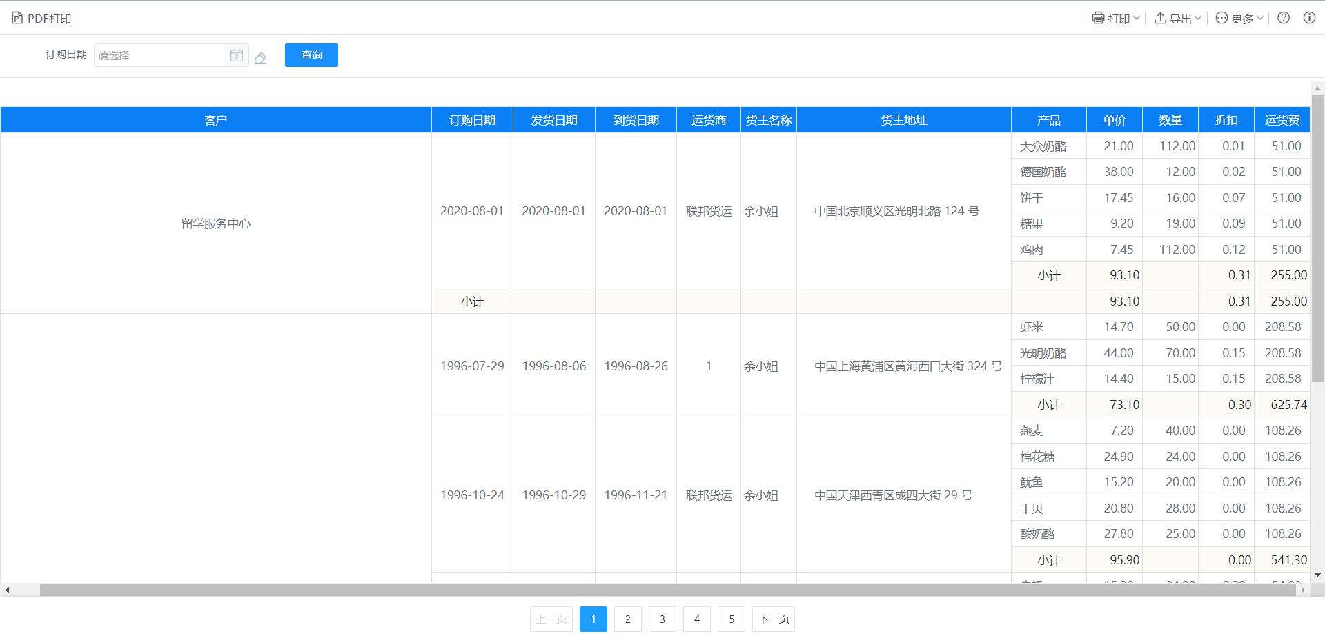 最终报表,用户只可根据已有参数过滤查看,可执行打印、导出等功能。