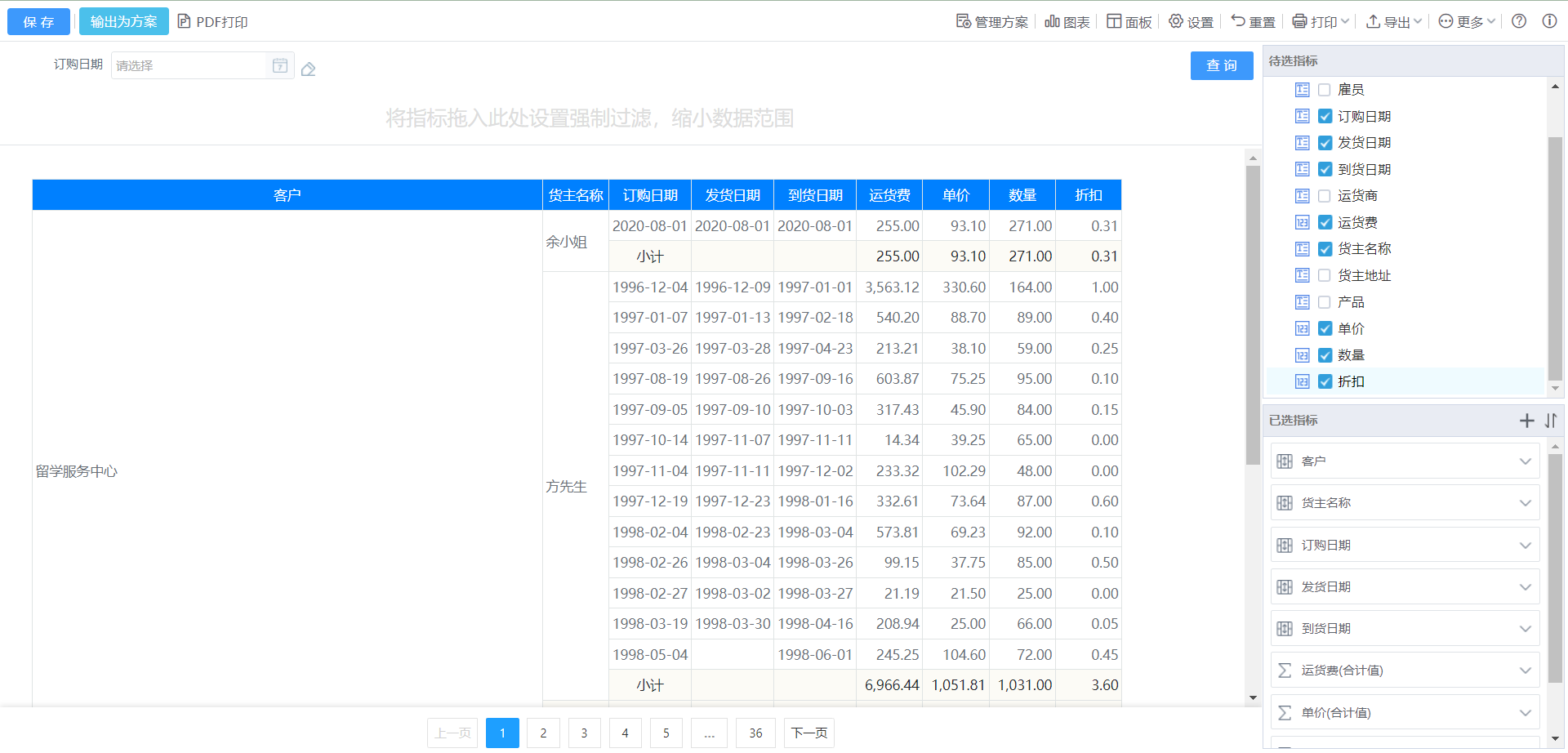 业务人员使用技术人员事先创建好的即席查询模板,在其制作的模板中进行自定义创造多个方案,并且方案可创建多张报表,适用自助分析数据。