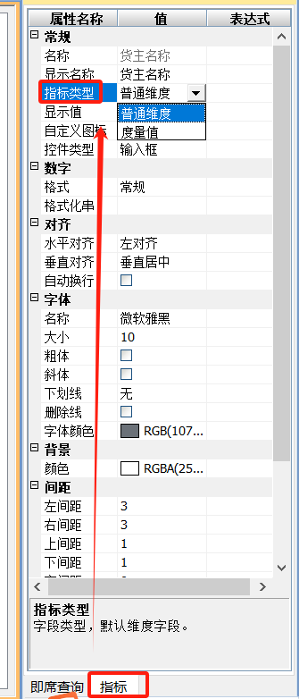 指标类型设置需要设计人员在设计器中进行配置: