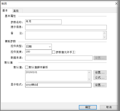 1 定义全局参数2 重命名1 定义全局参数创建全局参数,参数名称为“年月”,控件选择“日期”控件。参数默认值设置静态数据“20160101”,显示格式设置为“yyyyMMdd”,如下图:2 重命名“年月”全局参数打的内部名称重命名为“NY”。作者:敏 创建时间:2024-09-25 10:15最后编辑:敏 更新时间:2025-03-11 16:12