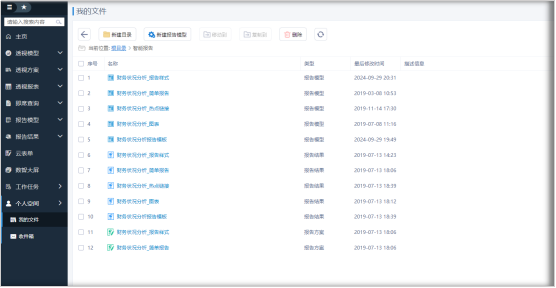 报告模板保存后可以在个人空间“我的文件”中查看,如下图: