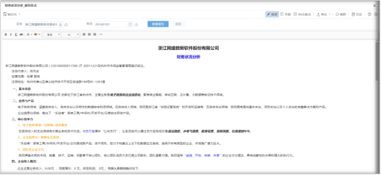 编辑模式下可以对报告文字内容进行调整,删除图表和表格指标等。