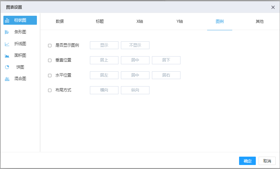 “图例”中可以设置图例是否显示、显示位置和布局,同样先要启用功能,再进行配置。取消启用勾选后设置无效。