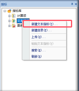 在文本指标节点右键,点击“新建文本指标”菜单,如下图: