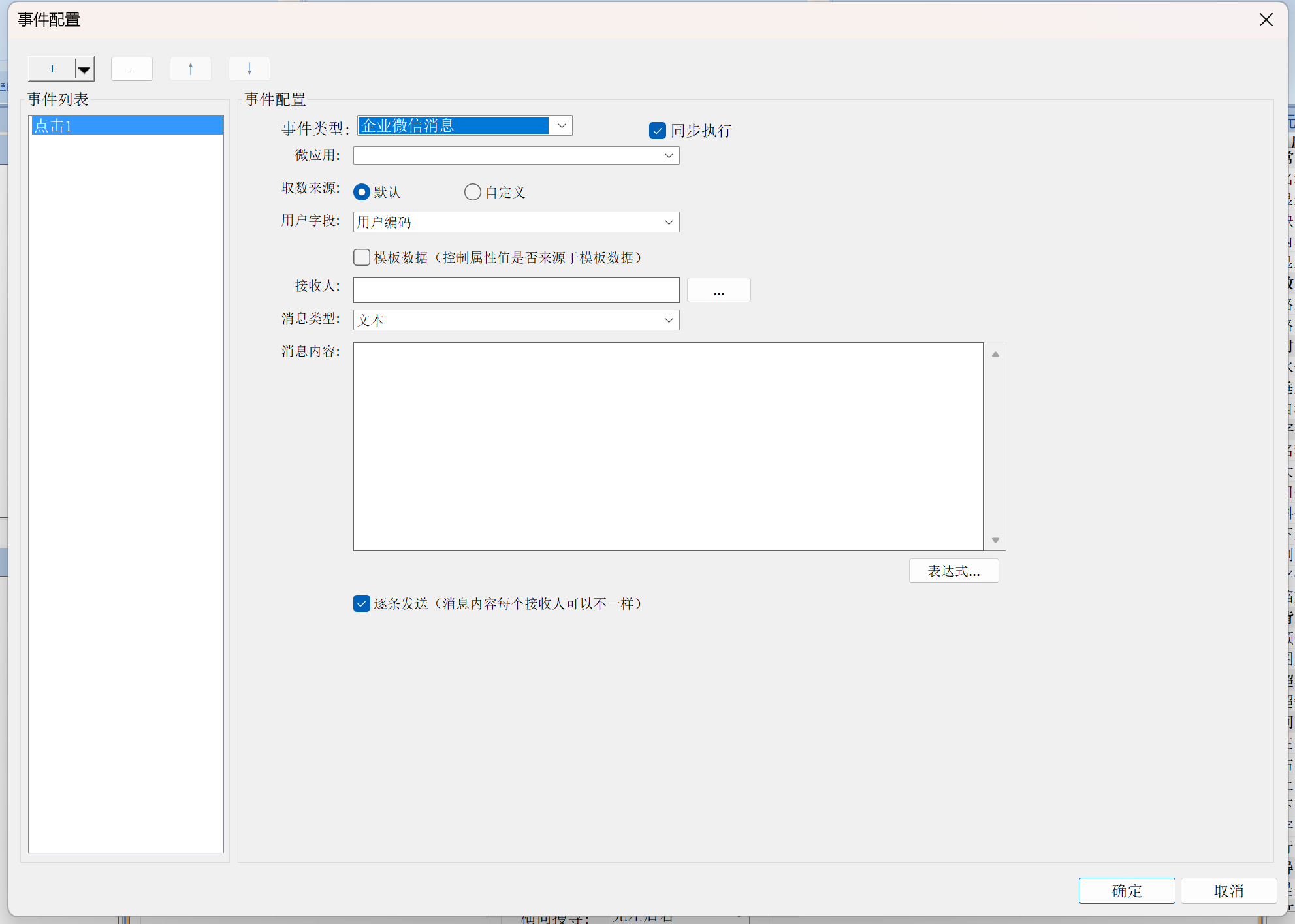 支持选择配置的企业微信微应用、接收人及消息内容。