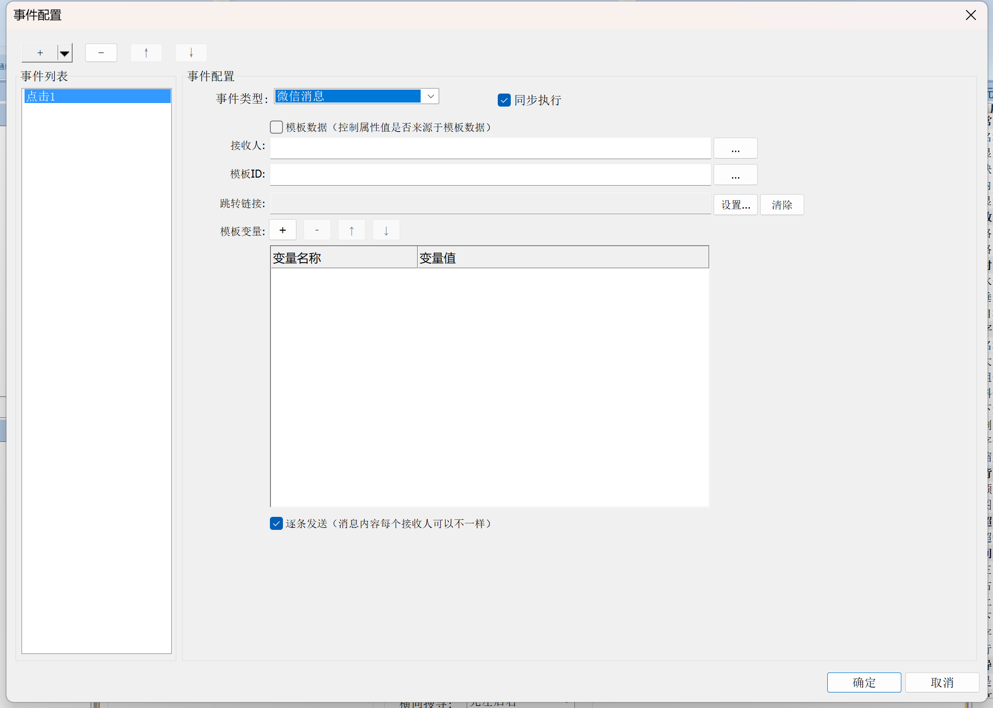 支持选择配置的接收人、模版id、跳转链接及模版变量。