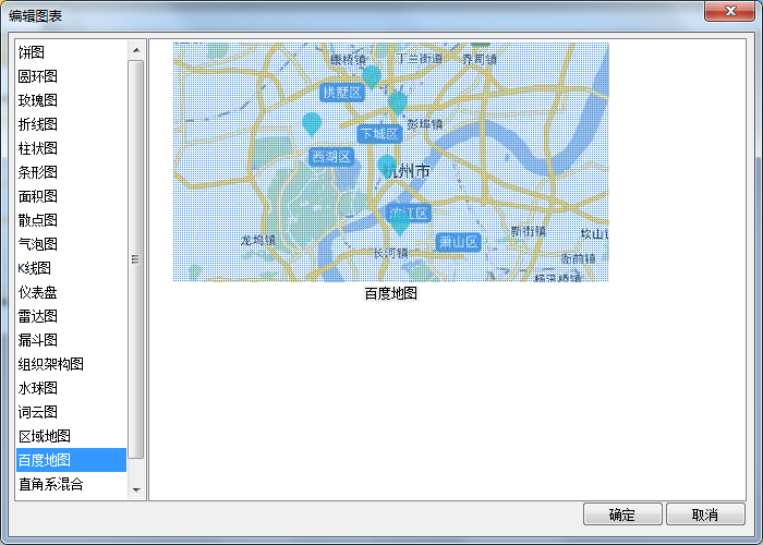 工具栏选择[插入>图表],选择”百度地图”类型,如下图: