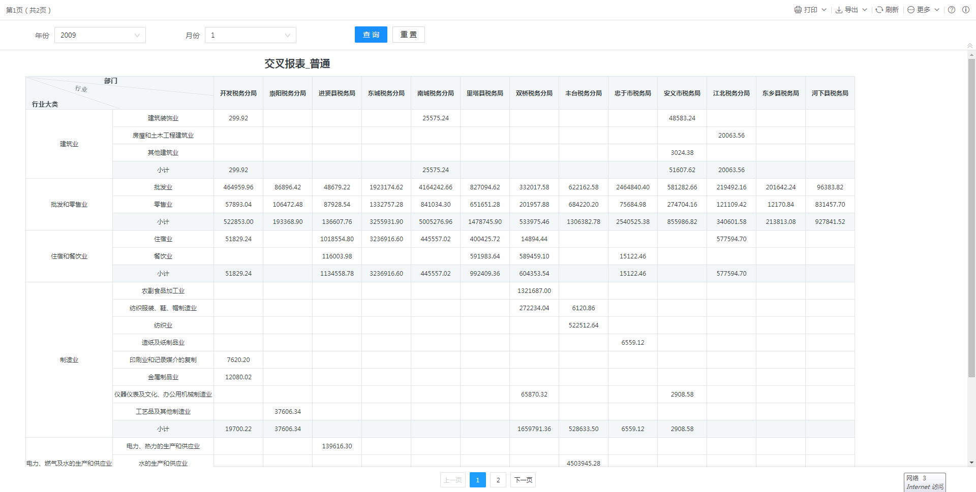 这样可以实现【行业大类】、【行业】在每页中都能显示,这样可以方便和【部门数据】进行查看。