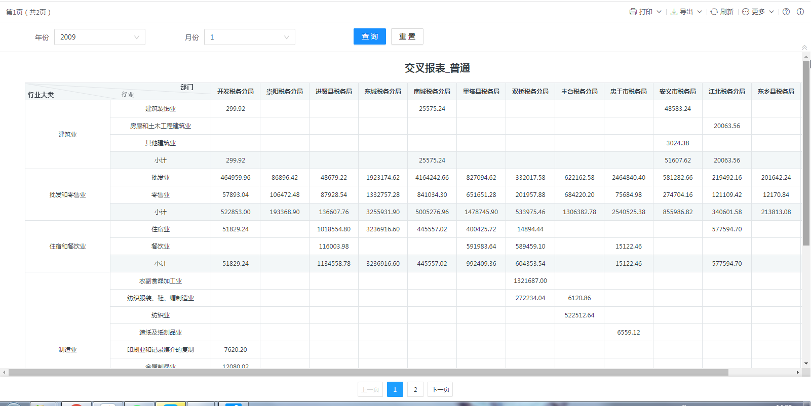 通过行业和税种两个维度,统计每个行业在不同税务部门缴纳的税额。