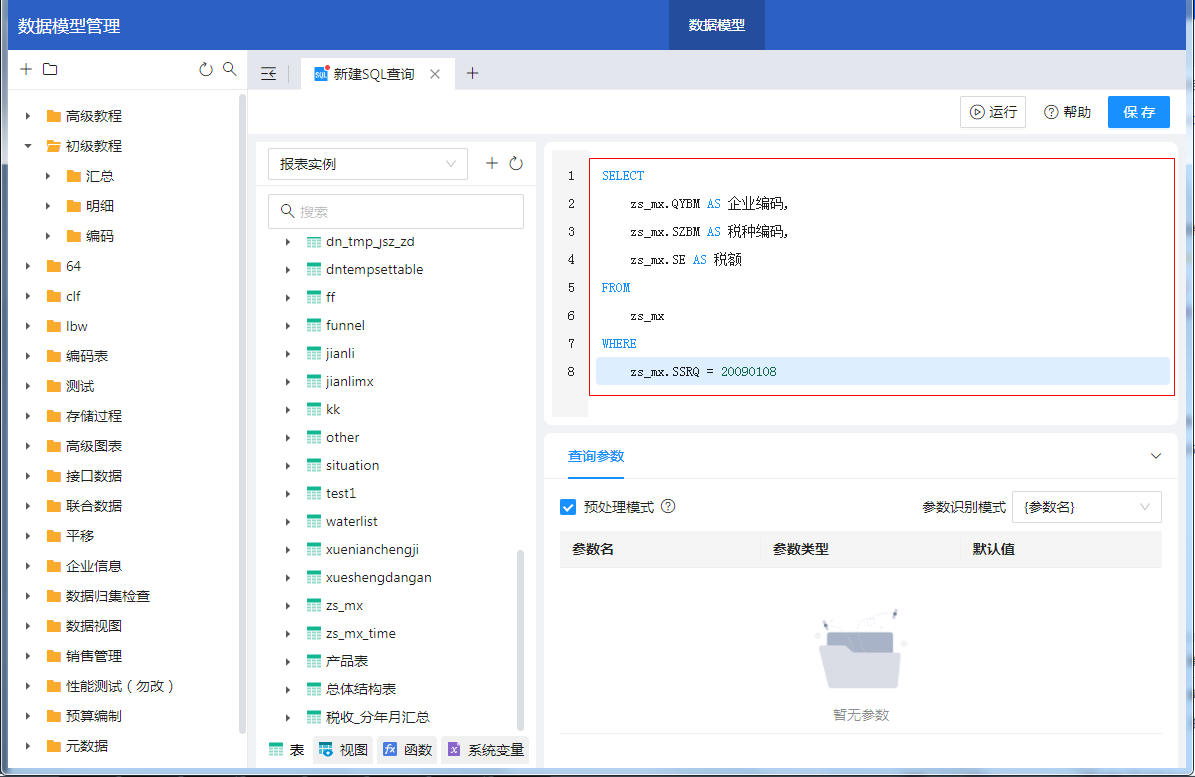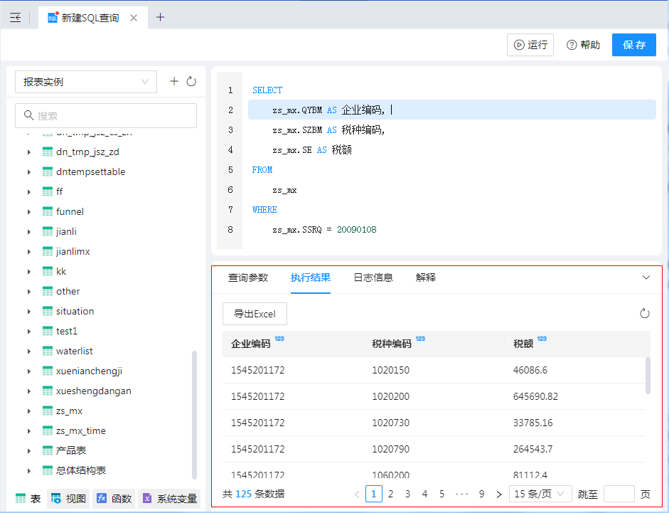 2)编辑好SQL后,点击“运行”即可查询取出的数据。