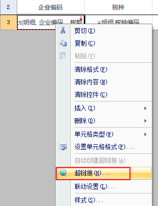 3)选中单元格,通过单元格属性中的“超链接”配置项进行配置,如下图: