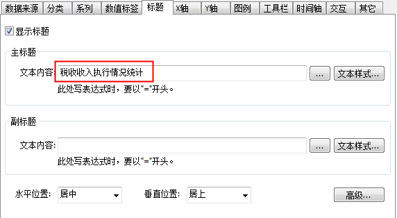 设置图表主标题为“税收收入执行情况统计”,如下图: