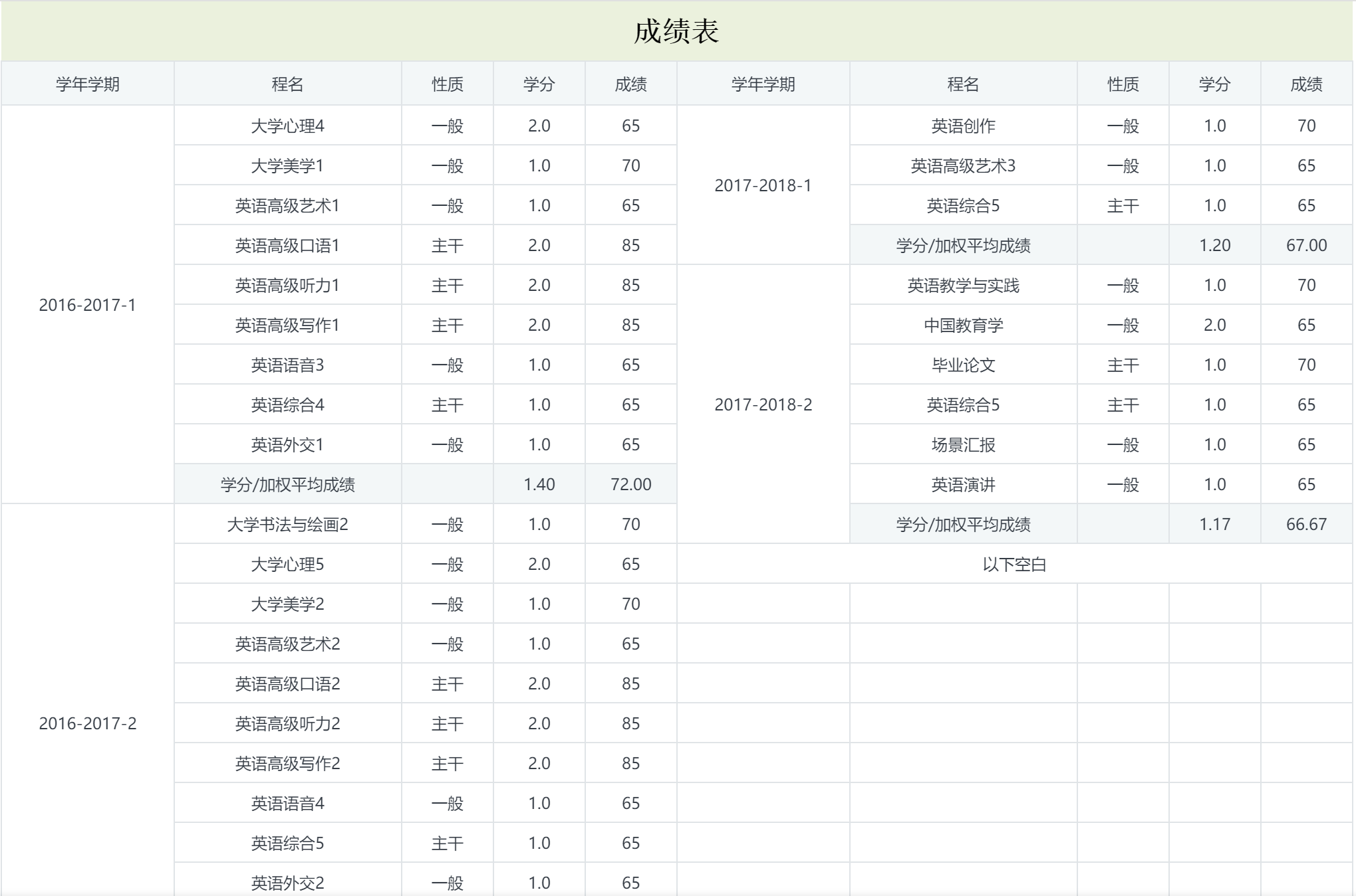 以学生成绩表为例,使用分组分栏的效果展示出现,效果如下图: