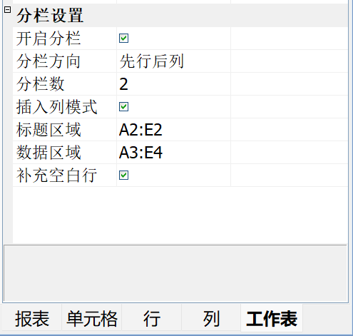 1)开启分栏:必须勾选,表明这是一张分栏报表了;
