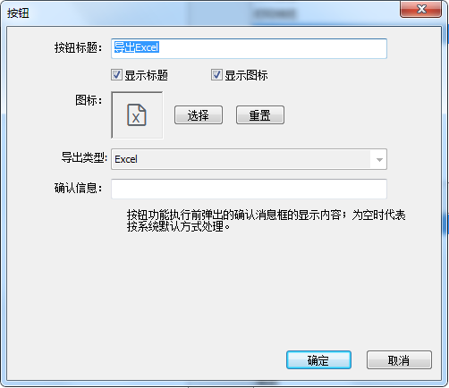 部分按钮支持个性化设置,添加到右侧区域的按钮选中后,若出现“”按钮,可点击进入设置界面进行一些个性化配置,比如添加“导出Excel”按钮并为其进行设置,如下图: