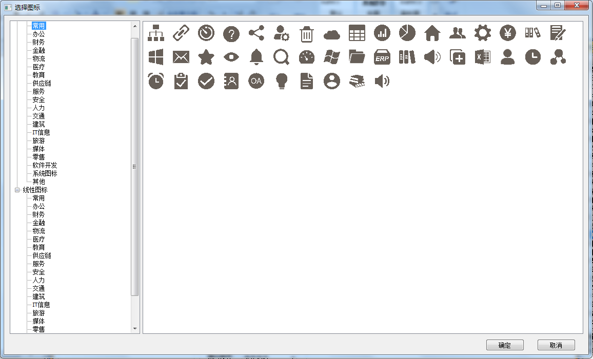 点击图标的“选择”按钮,可更改图标,在系统目前提供的图标中进行选择,如下图: