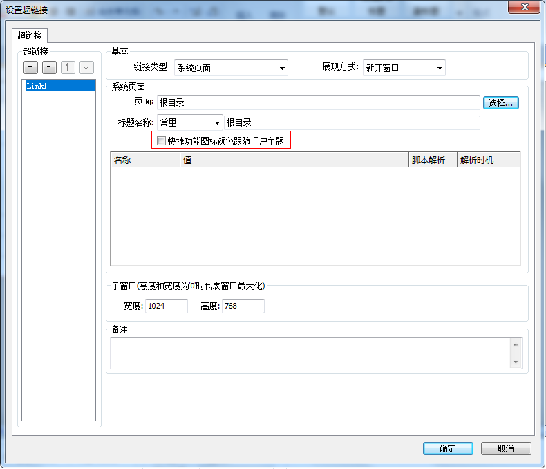 报表或表单超链接快捷面板时,快捷功能图标需要跟随主题显示时,在超链接配置窗口中选择快捷面板后,勾选“快捷功能图标颜色跟随门户主题”选项即可,如下图: