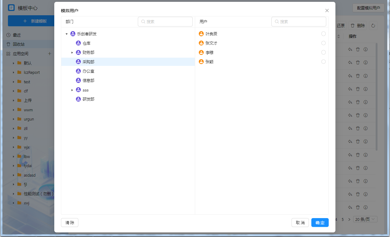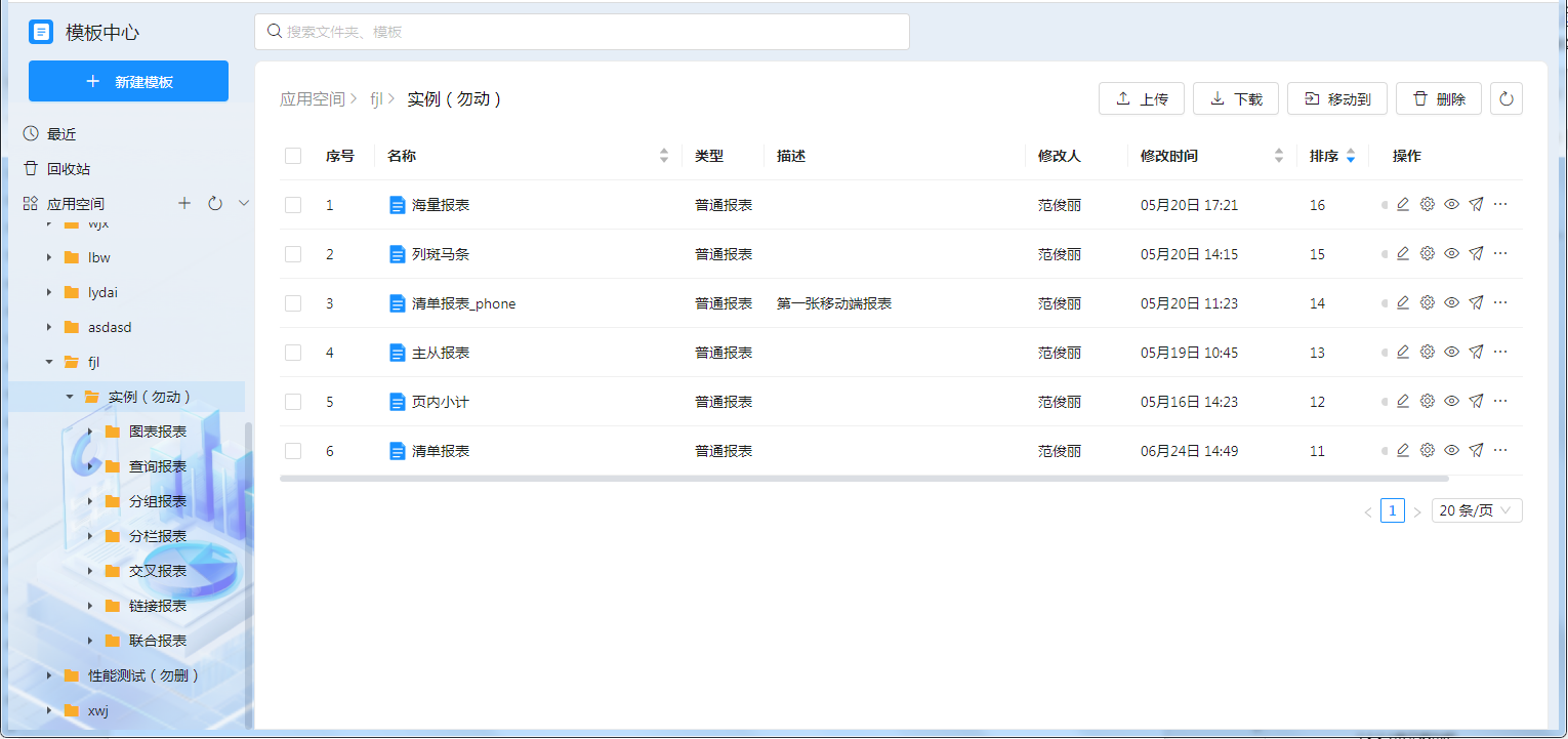 创建的所有模板均在“应用空间”中,支持创建文件夹进行分类管理。