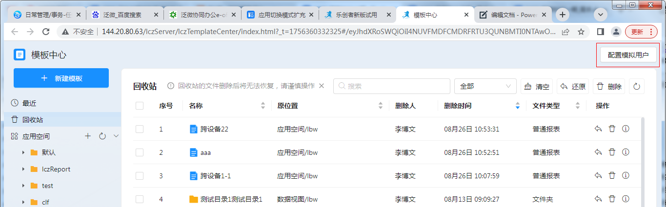 通过“模拟用户”可以模拟其他用户身份查看数据。