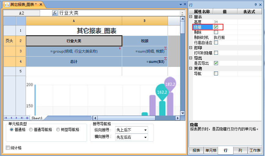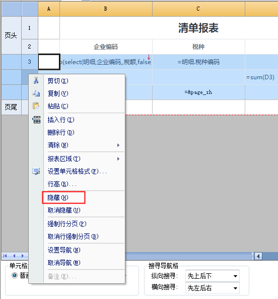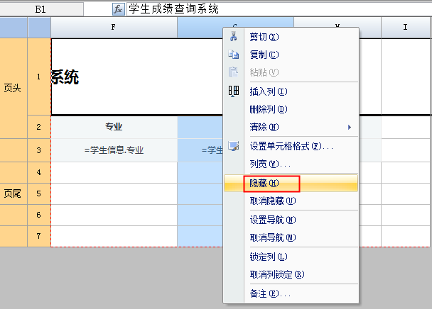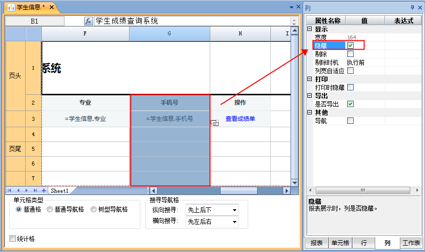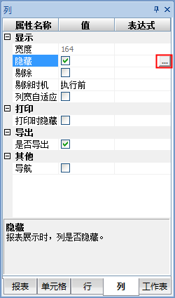 有时我们需要符合条件的时候显示行列,否则隐藏行列,这时可以通过条件属性表达式设置条件来实现。