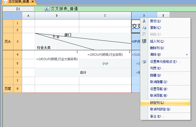 这样可以实现【行业大类】、【行业】在每页中都能显示,这样可以方便和【部门数据】进行查看。